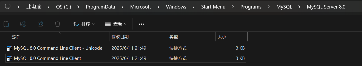 安装完毕后,可以在开始菜单中找到 MySQL 8.0 Command Line Client: