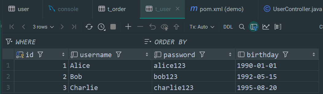 传递对象的请求体构造 假如我们在项目的 entity 包中创建了 User 类。