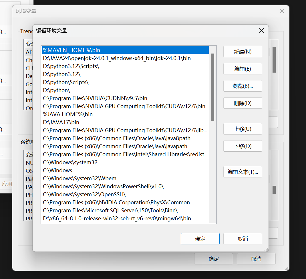 JAVA 环境配置 环境变量,可以直接新建变量 JAVA_HOME 并在 Path 中加入。也可以直接放在 Path。