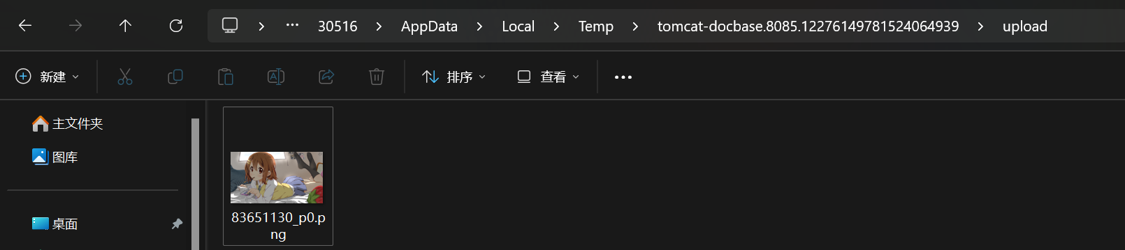 我们可以看到,图片的确从本地上传到服务器(因为我们没有部署,这里的路径是 Tomcat 为我们分配的):