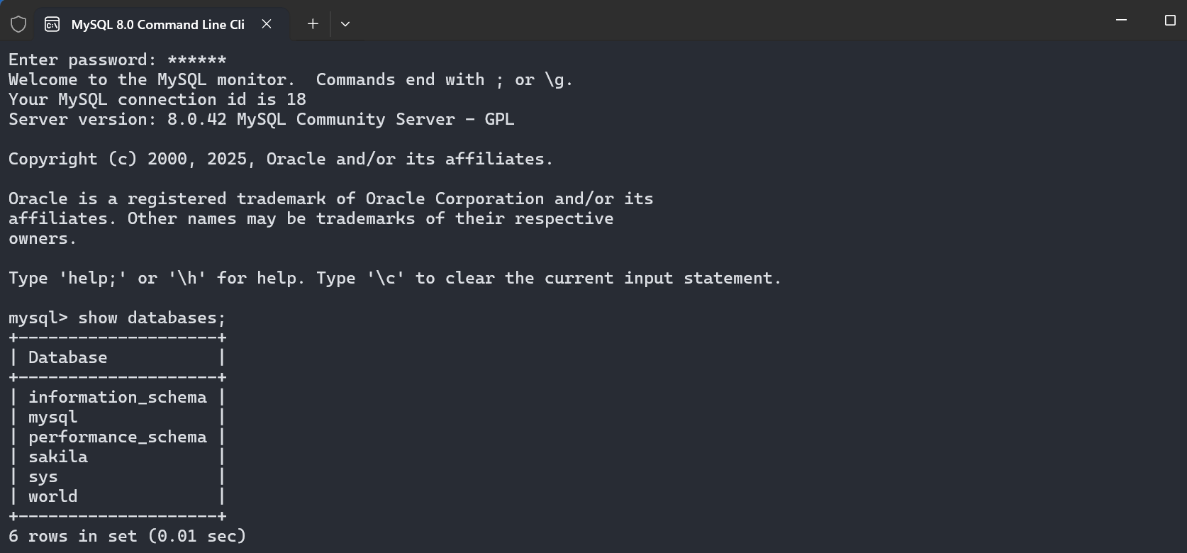 我们可以直接在 MySQL 8.0 Command Line Client 建数据库:
