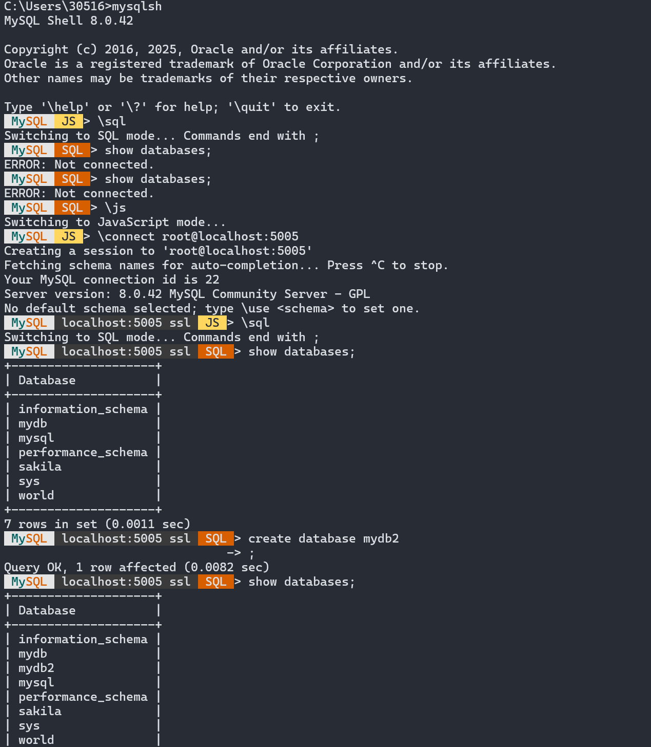 另一种方式是在 cmd 中输入命令 mysqlsh:
