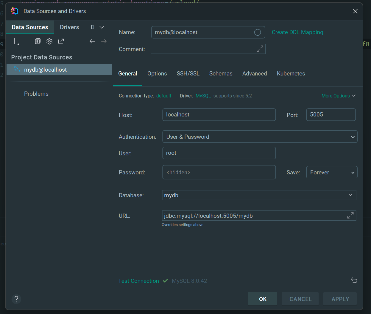 数据准备 在下一章连接时候,我们的 url 是 jdbc:mysql://localhost:5005/mydb,这意味着我们的数据库名为 mydb,因此我们需要建一个名为 mydb 的数据库。