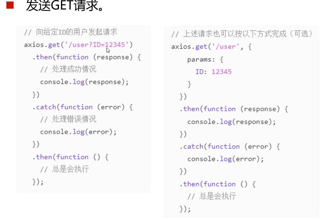 GET GET请求通过将请求参数附加到URL中 ,以查询字符串的形式出现,以便将信息发送给服务器。这种请求方法适用于获取数据,而不是修改数据,因此它通常用于查询操作,如获取网页内容、图片、视频等资源。