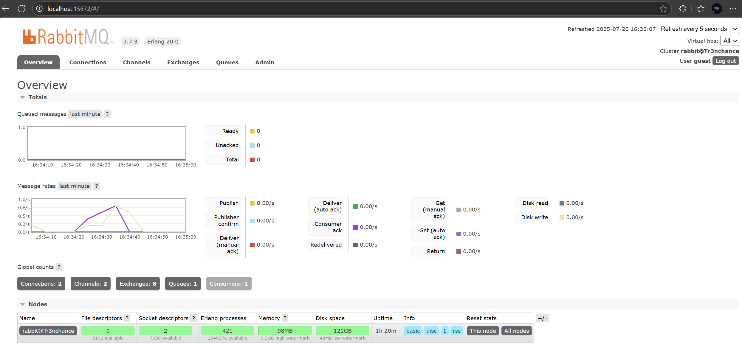 1 2 3 4 5 6 7 8 spring: application: name: producer rabbitmq: host: localhost port: 5672 username: guest password: guest