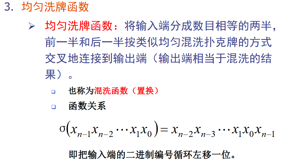 交换函数E,均匀洗牌σ(循环左移),碟式函数β(首尾交换),反位序函数ρ(倒序)。