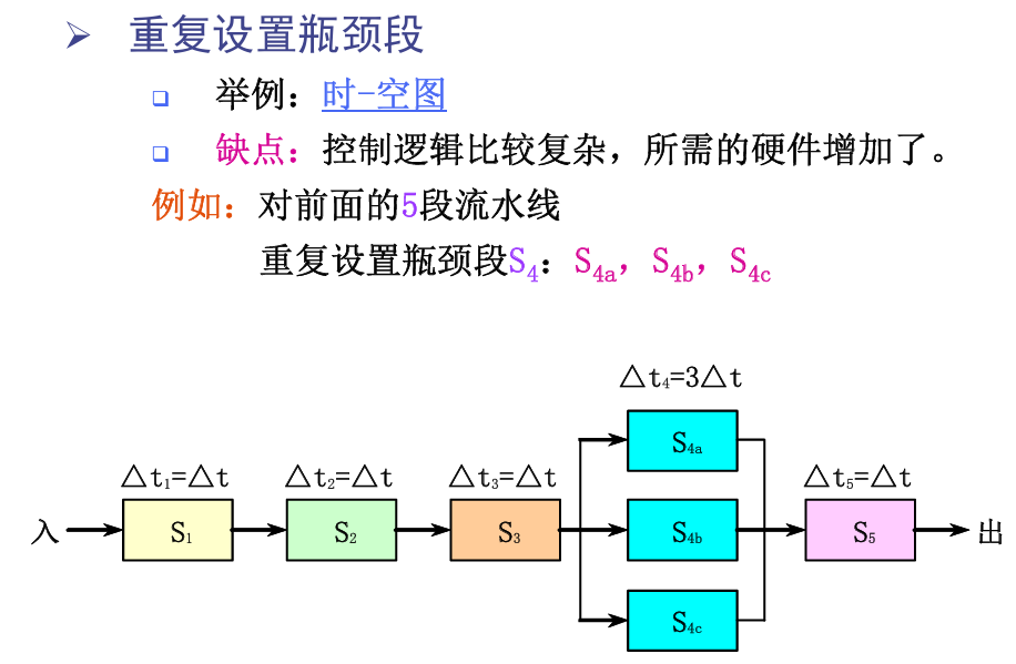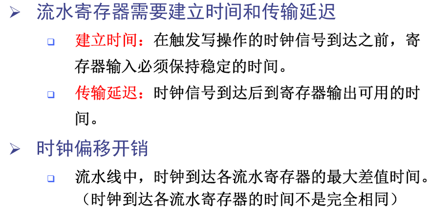 瓶颈问题;流水线额外开销(流水寄存器延迟,时钟偏移),增加流水线深度提升性能,但是深度受限于额外开销,时钟周期小到和额外开销相同时流水没有意义。流水线冲突。