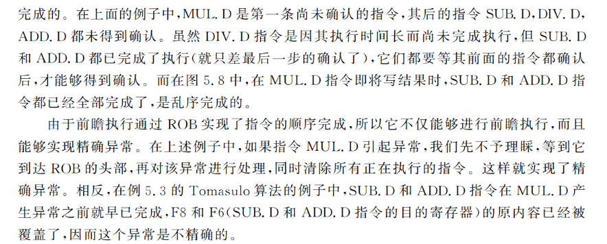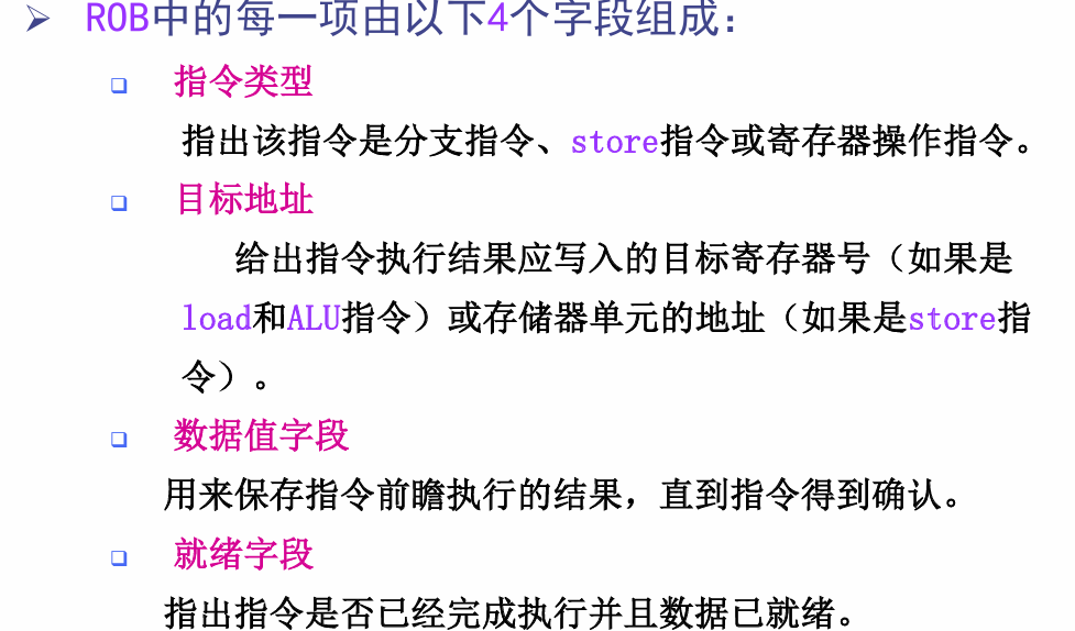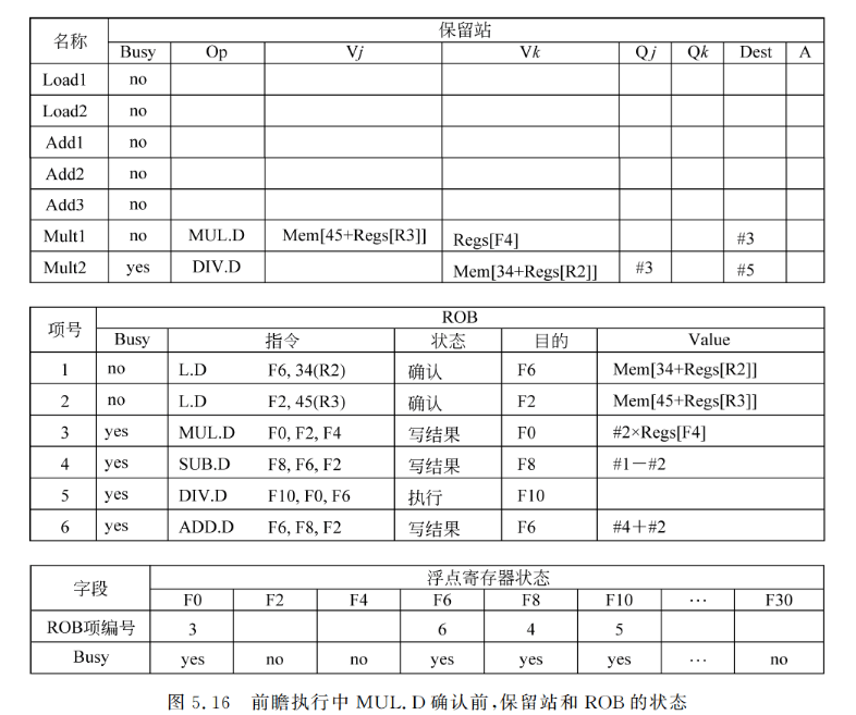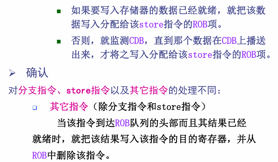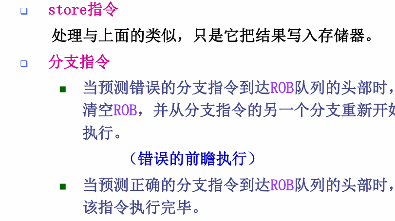 其中写结果只需要把结果写到ROB中;指令确认,如果前面所做的猜测是对的,把在ROB中的结果写到 寄存器或存储器,如果猜错,从另一条分支重新开始执行。