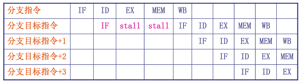 控制冲突:一般情况下,分支指令在MEM完成PC写入,带来3周期延迟: