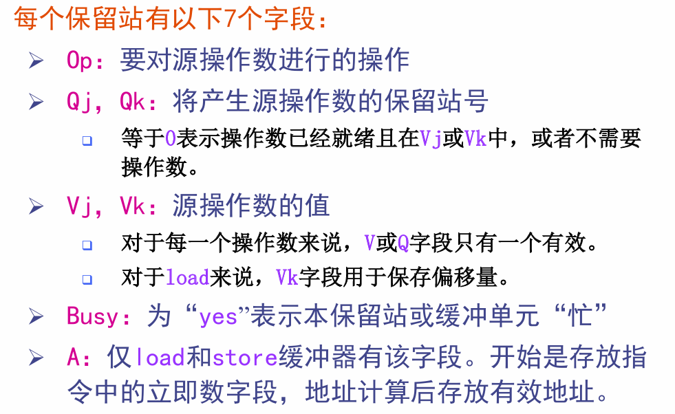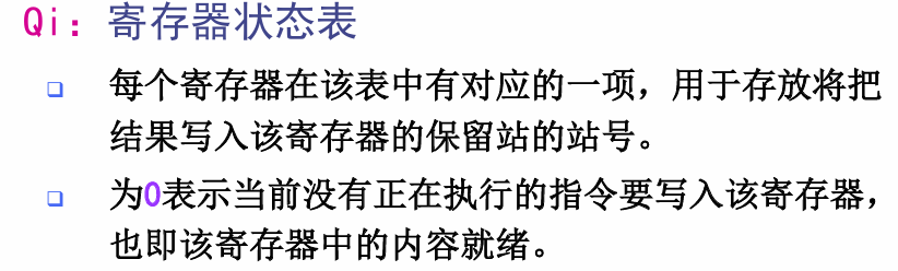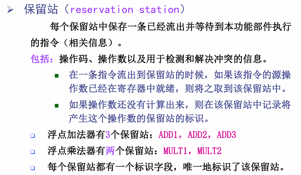 注意:当指令流出时,如果其操作数还没有计算出来, 则将该指令中相应的寄存器号换名为将产生这个 操作数的保留站的标识。