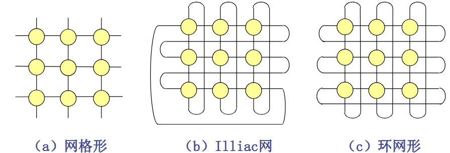 动态网络:总线网络,多级互联网络,交叉开关网络。