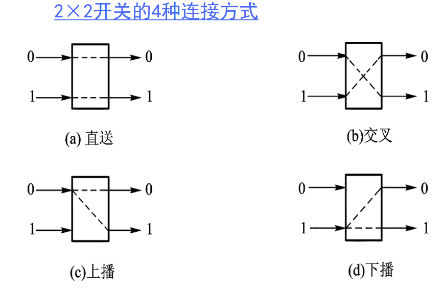 Omega级间采用均匀洗牌连接(循环左移),采用四功能2×2开关(直送,交叉,上播,下播),全部单元控制。