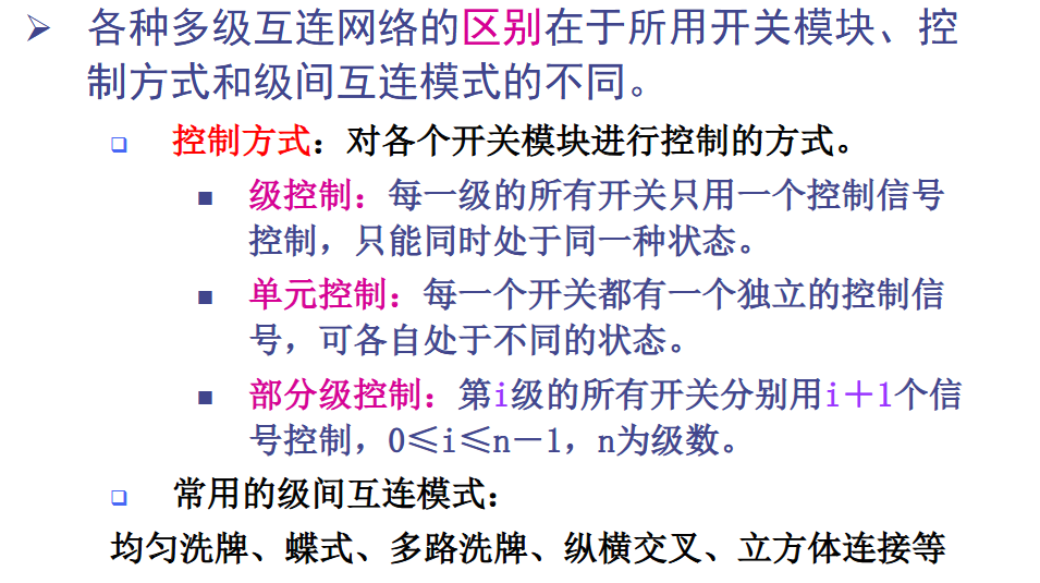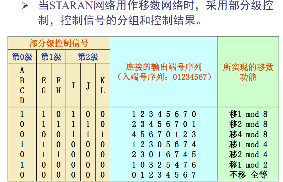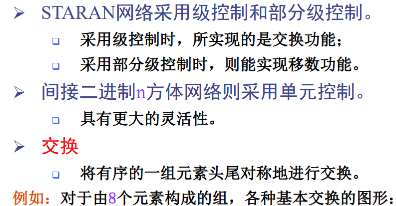 总结一下,STARAN网络有两种控制方式,级控制和部分级控制;Omega网络采用单元控制。