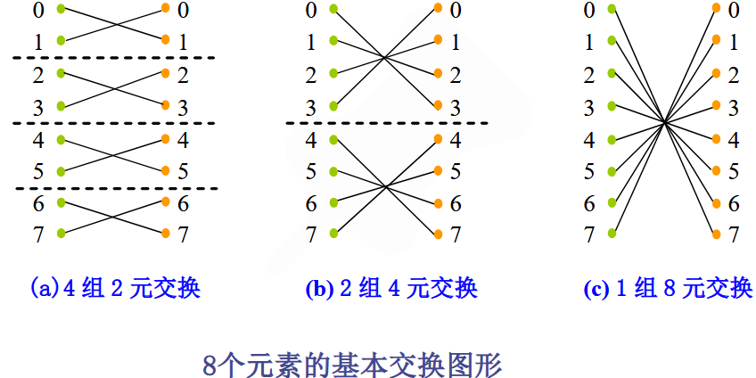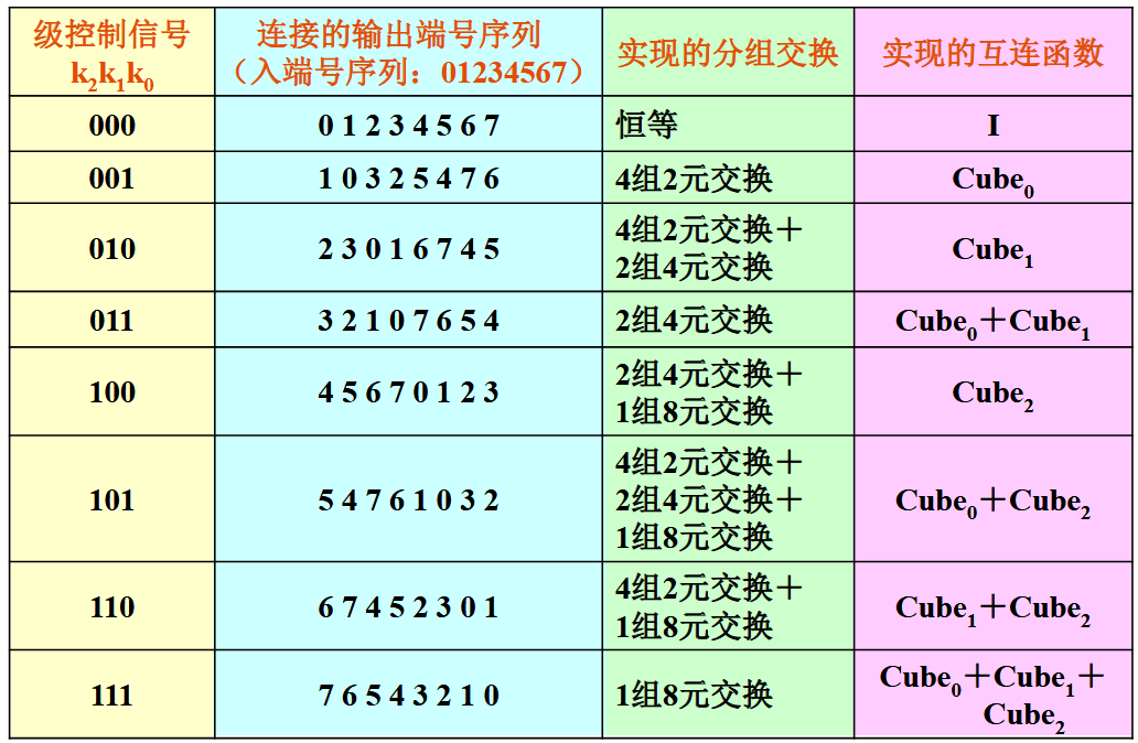 STARAN采用二功能2×2开关(只有直送,交换两种),当开关为1时,采用交换,0时采用直送。级控制时用于交换,第i级交换开关处于交换状态(0接1,1接0)时,实现的是Cubei互连函数;部分级控制时用于移数。