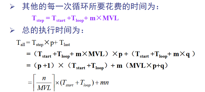 其实还是Tall = Tstart + mn ,只是这里引入了额外处理操作Tloop,(Tstart+Tloop) 总共加了(n/MVL上界) 次。