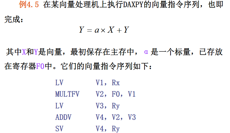 把能在同一个时钟周期内一起开始执行的几条向量指令称为一个编队(他们数据和结构都不冲突)(类似于例4.2的前两条)。