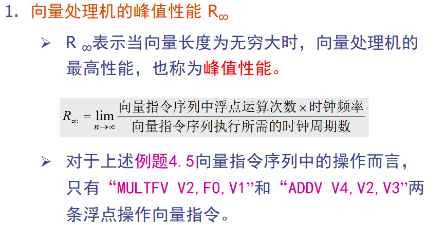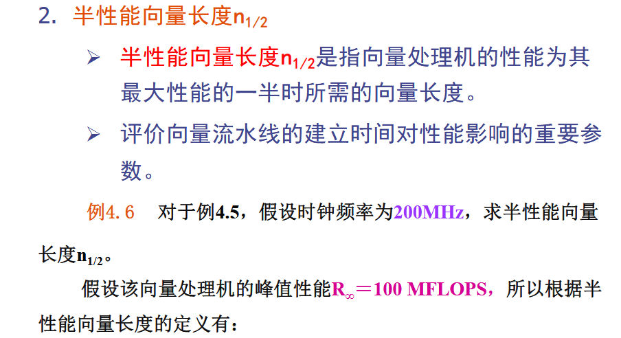 Tstart:从一条向量指令开始执行到还差一个时钟周期就产生第一个结果所需的时钟周期数。可称之为该向量指令的启动时间。(也就是通过时间周期数-1)。