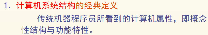 计算机系统结构: 指程序员所看到的计算机属性,即概念性结构以及功能特性。