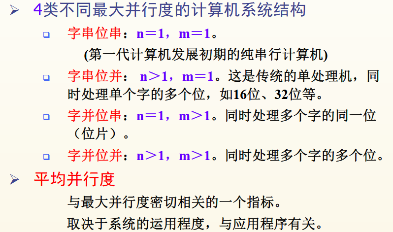 最大并行度:计算机系统在单位时间内能够处理的最大的二进制位数。