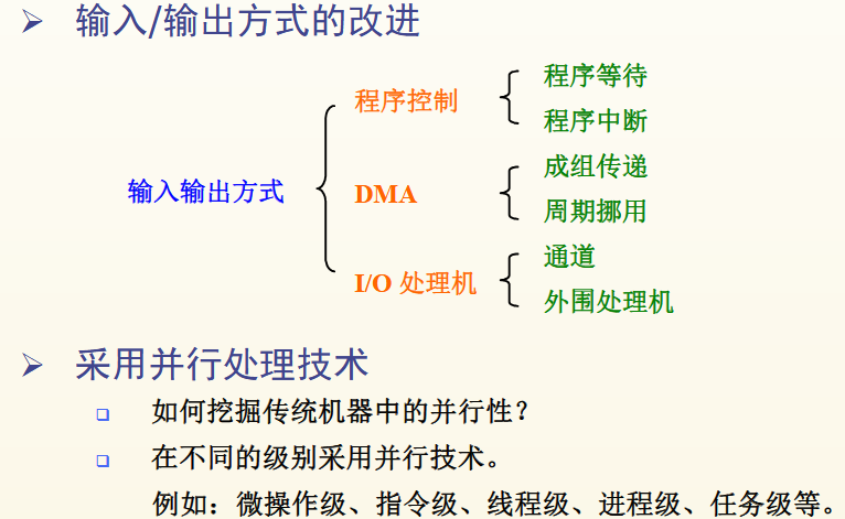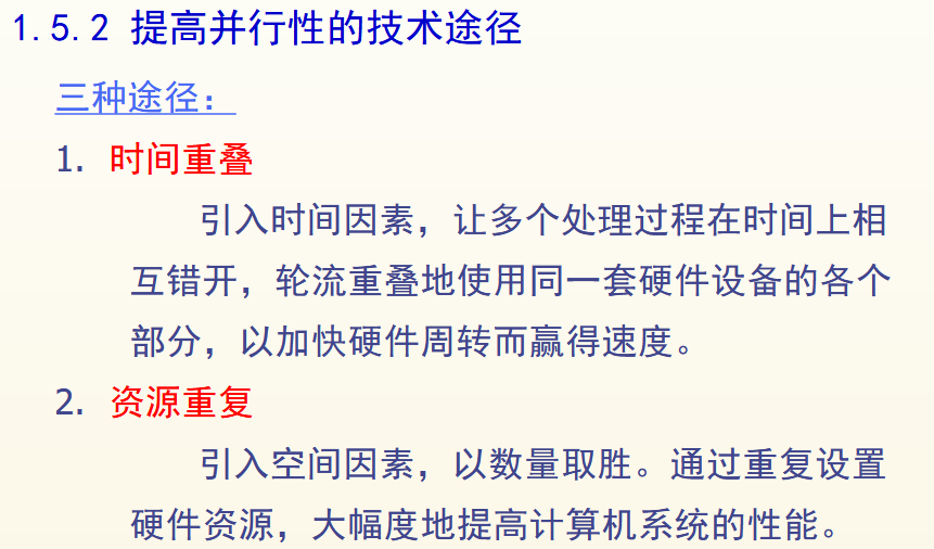 提高并行性的三种途径:时间重叠,资源重复,资源共享。