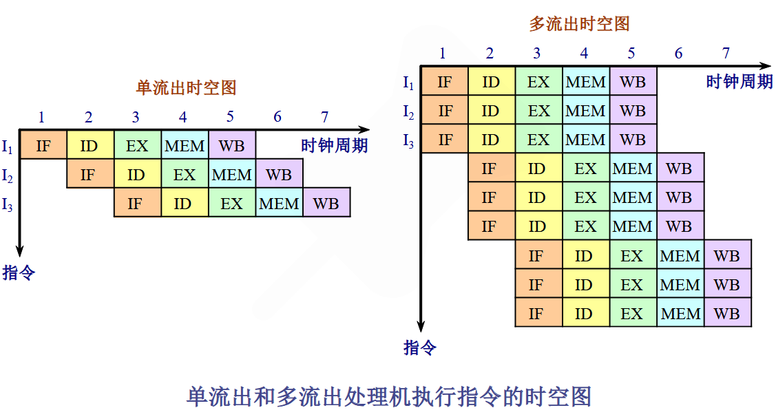 将每个流水段进一步细分,这样在一个时钟周期内能够分时流出多条指令。这种处理机称为超流水线处理机。如MIPS R4000。