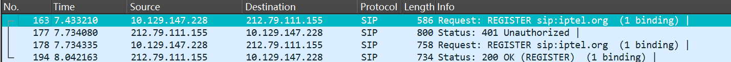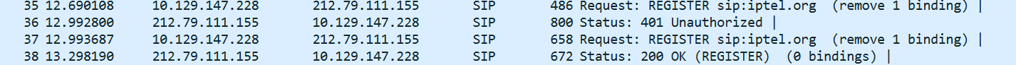 | 18 | INVITE | 注册服务器将主叫的请求转发给被叫 |