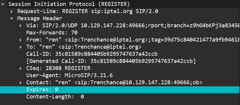 a. 终端代理向代理服务器发送注销请求(REGISTER);
