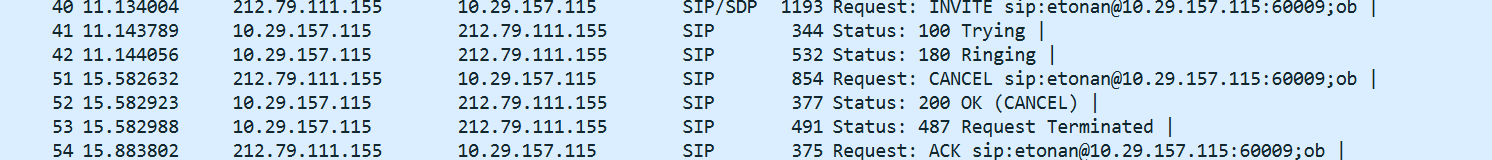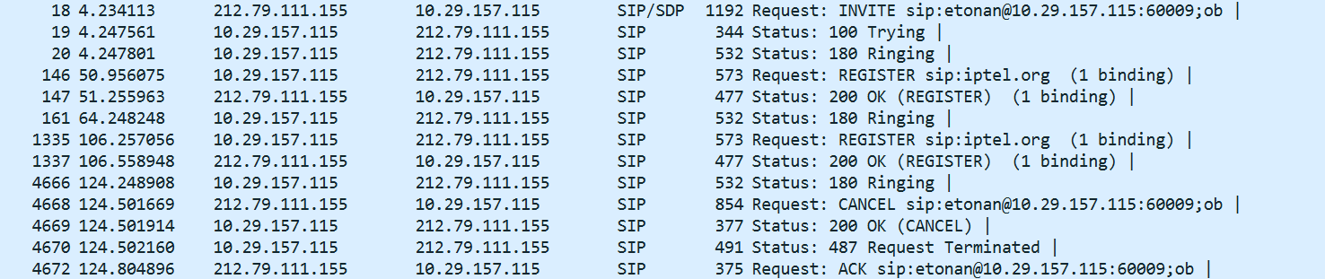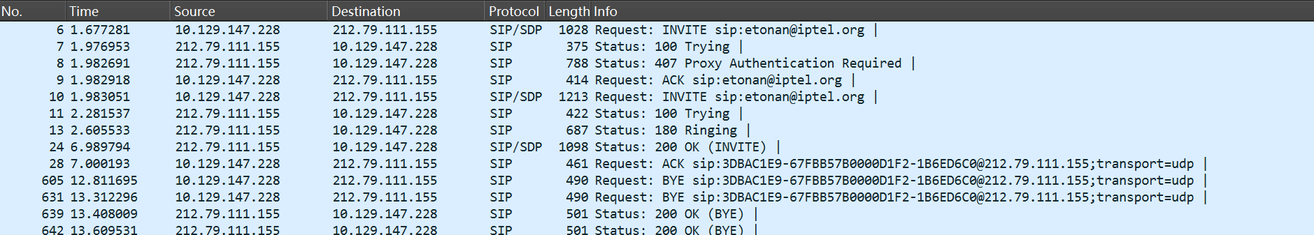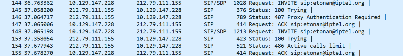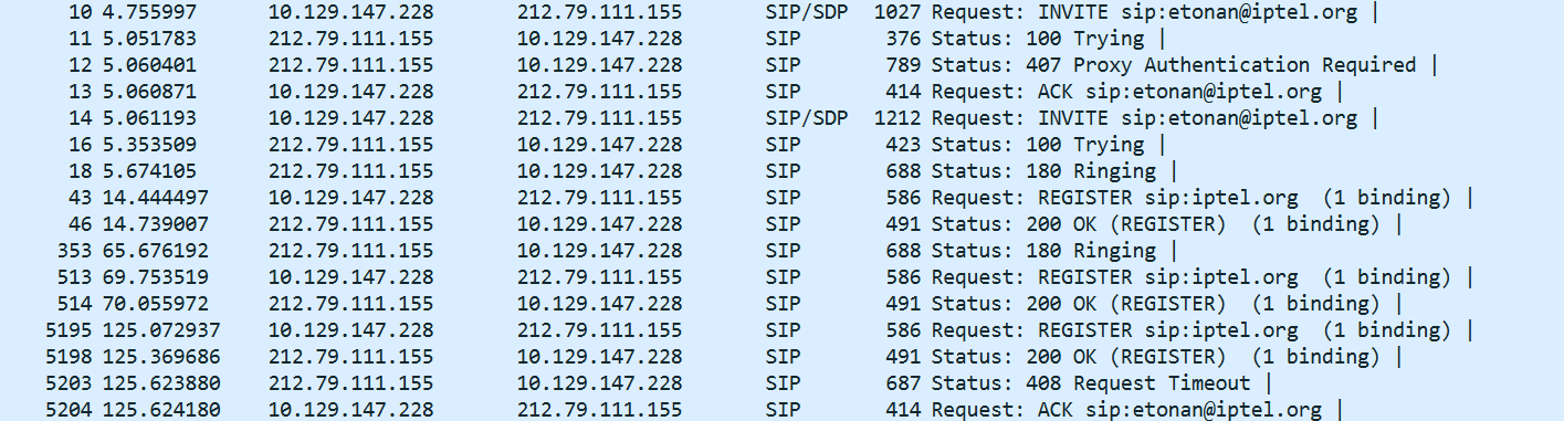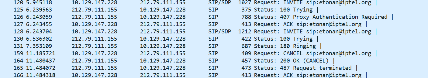 | 120 | INVITE | 主叫发起呼叫 etonan@iptel.org |