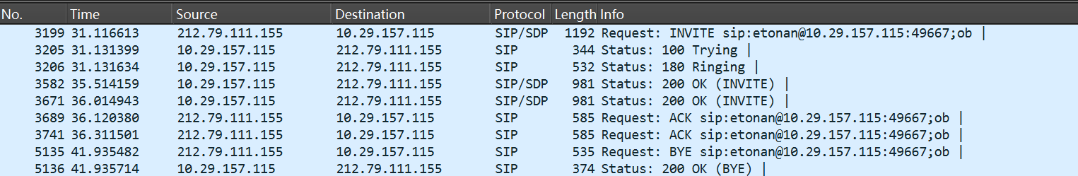| 3199 | INVITE | 来自主叫的通话请求 |