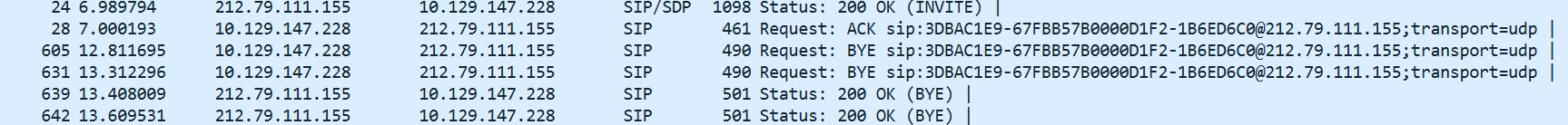 | 642 | 200 OK (BYE)(重传) | 被叫重传 OK 作为应答确认 |