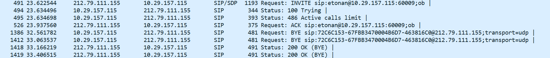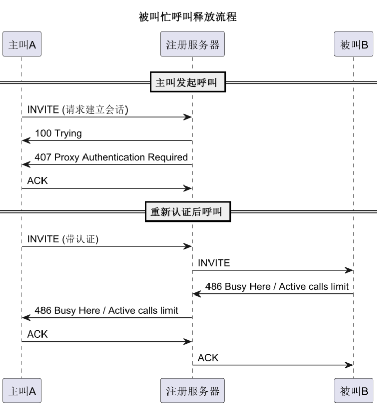| 495 | 486 Active calls limit | 被叫返回忙响应,拒绝呼叫 |