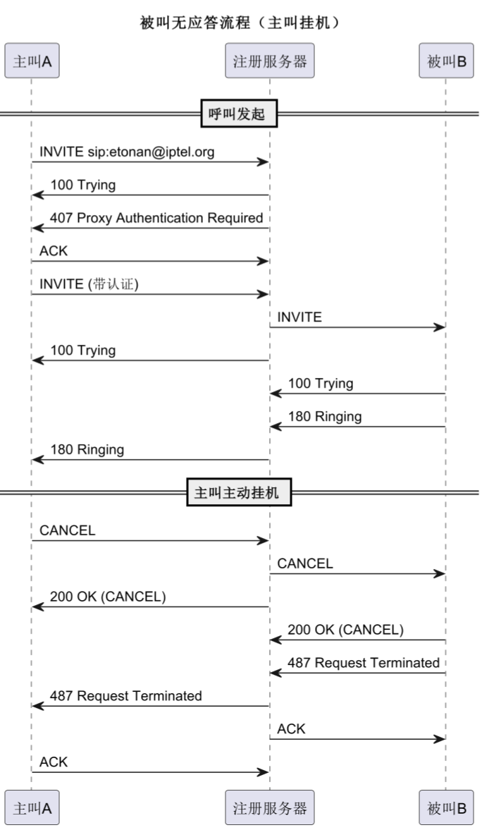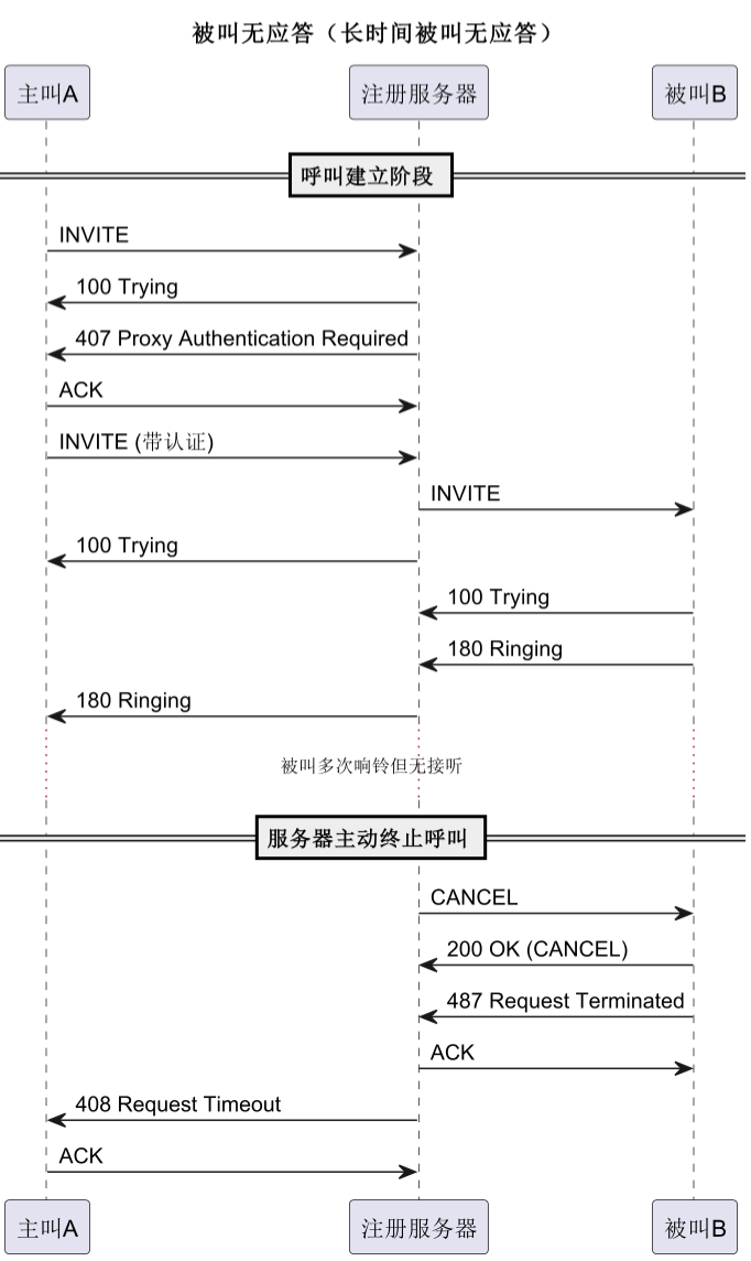 | 5204 | ACK | 主叫确认收到 408 响应,呼叫流程结束 |
